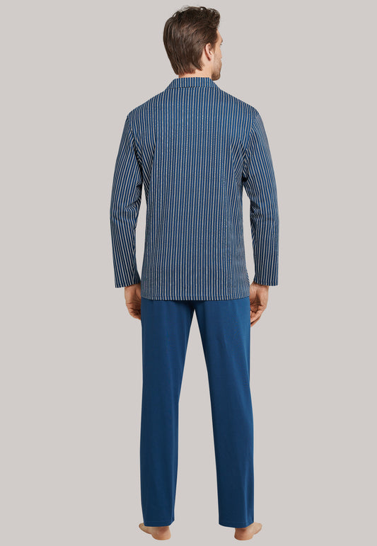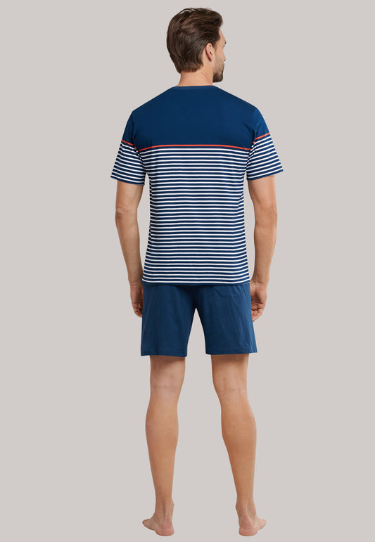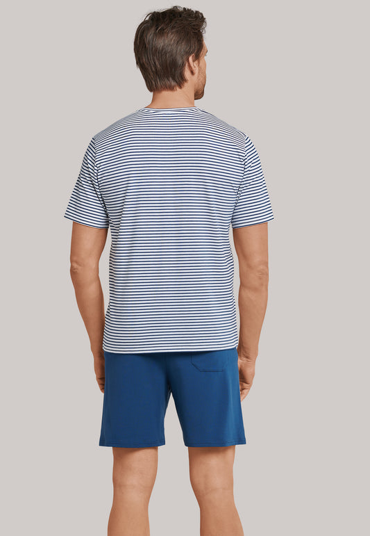 Pyjama Kort met Dwarsstrepen Donkerblauwmelange